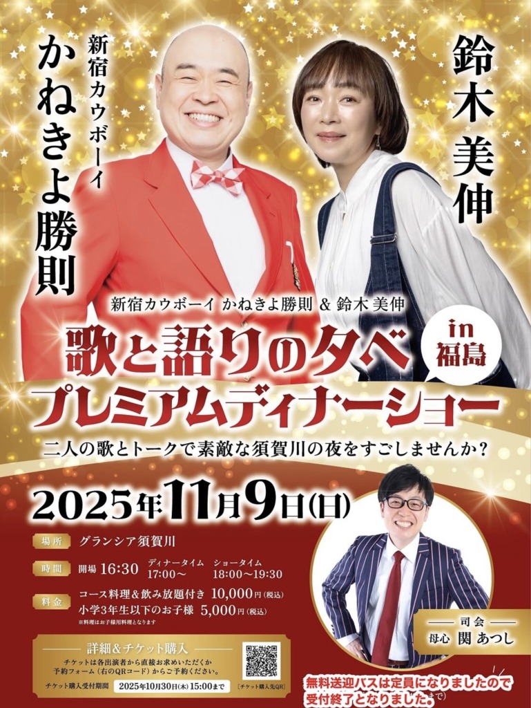 【11.9開催】大人気の美伸さん初のディナーショー【残りわずか】