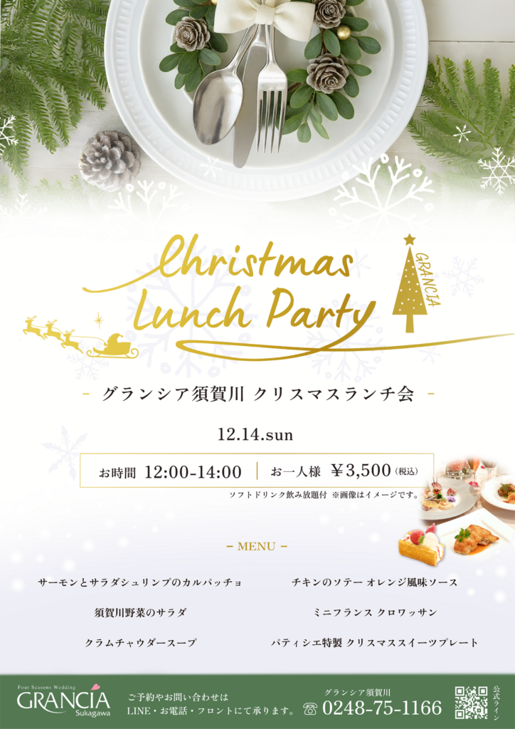 予約受付中♩【12.14】豪華ランチ付き Xmasランチ会